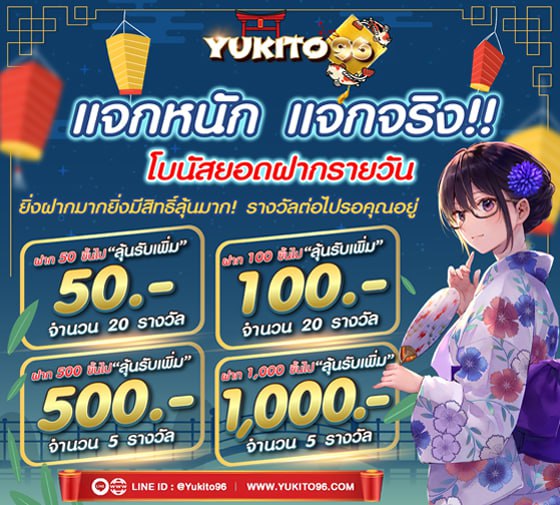 ⛩️ โบนัสยอดฝากรายวัน กิจกรรมใหม่จาก YUKITO96.COM ⛩️